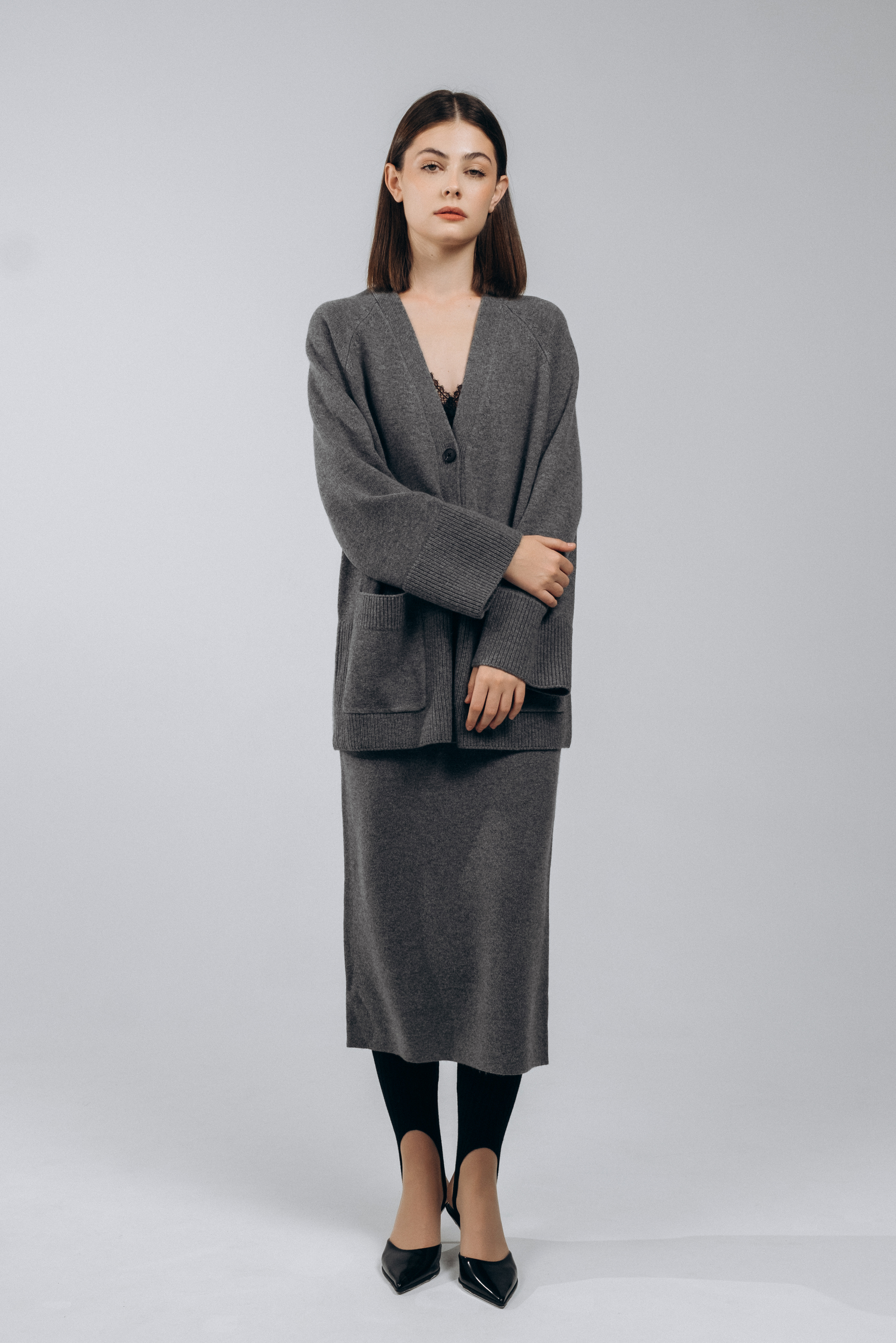 Трикотажная юбка – ваш комфортный спутник холодными днями! Состав из 90% шерсти и 10% кашемира гарантирует тепло и нежность к телу. Длина миди универсальна и подойдет любой фигуре. Кардиган из аналогичной ткани доступен отдельно, дополнив образ законченностью. Серый цвет идеально сочетается с большинством оттенков верхней одежды и аксессуаров. Идеальный выбор для стильных и практичных женщин.